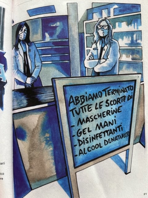 Dai brainstorming con i farmacisti e le farmaciste bolognesi, sono emerse parole come Solitudine, Senza tregua, Fatica, Circolari, Code, Vaccini, Fare squadra e altre ancora, che hanno dato i nomi ai capitoli della graphic novel, che è dedicata ai farmacisti deceduti durante la pandemia e si conclude con queste parole: “Marzo, 2022: fine dello stato di emergenza Covid. Ma ormai la farmacia ha imparato: siamo convinti che il peggio sia alle spalle, ma in ogni caso..noi siamo qui, pronti ad affiancare la Sanità Pubblica del nostro Paese per proteggere e garantire la salute dei cittadini. Sempre più professionali e, come sempre, umani”.